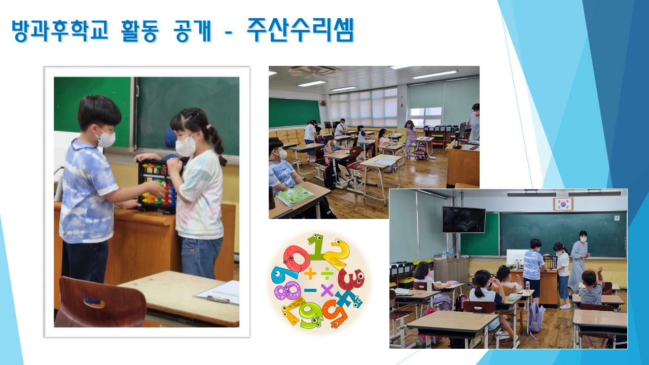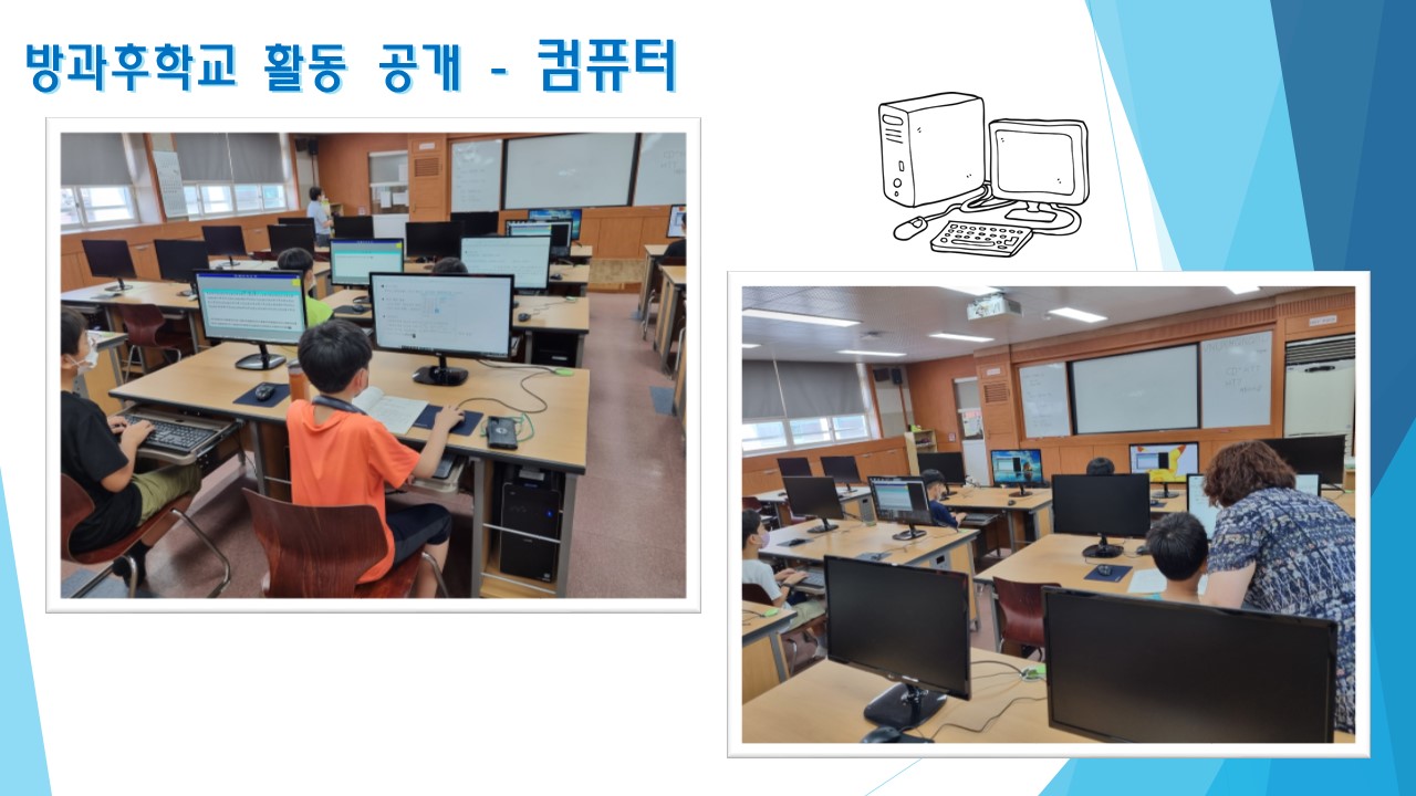 벨리방송댄스 / 항공드론 / 주산수리셈 / 컴퓨터 / 돌봄교실(1,2반) 모습입니다.
